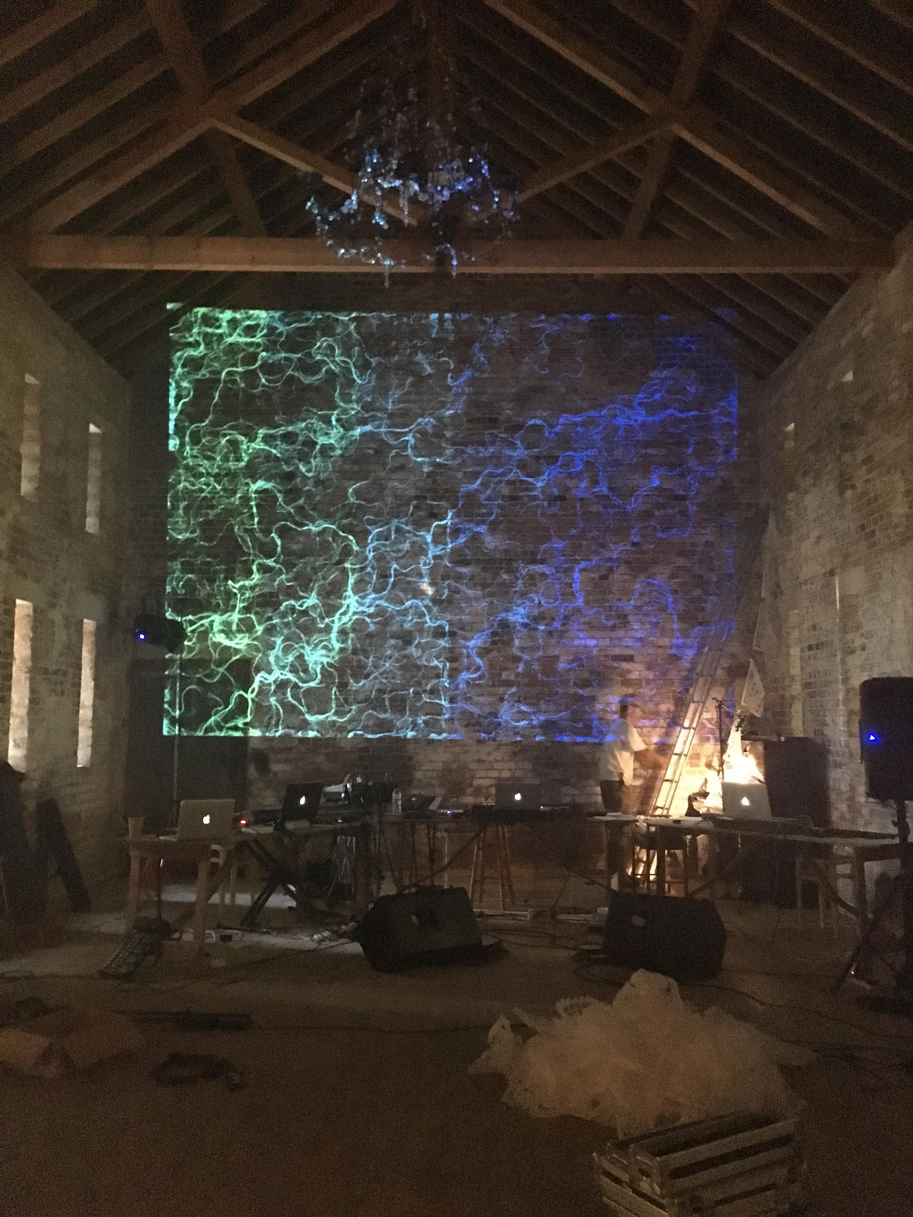 In September 2018, I created a series of audio-reactive visualisers for, and performed as part of, an electronic music trio in the Cherubim Music festival in Tisbury, England. I created the visualisers in Processing.